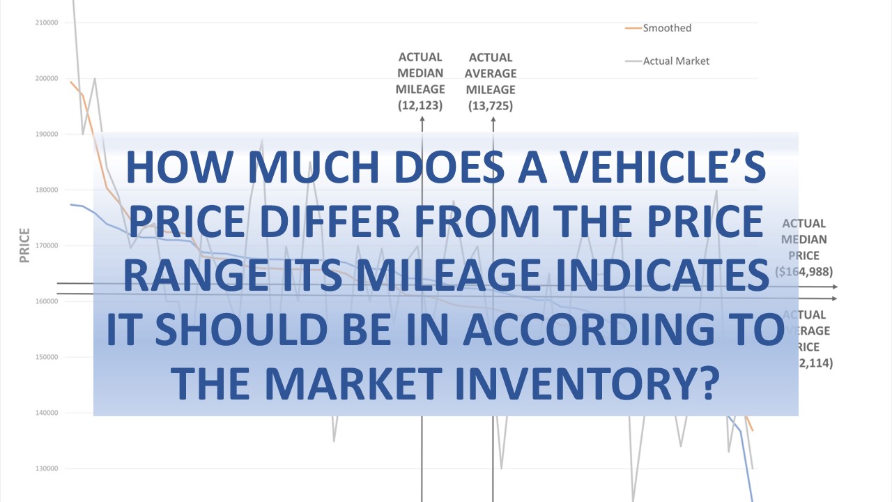 - This allows you to understand where a specific vehicle fits into the market inventory in terms of price and mileage using the distribution of actual market values.