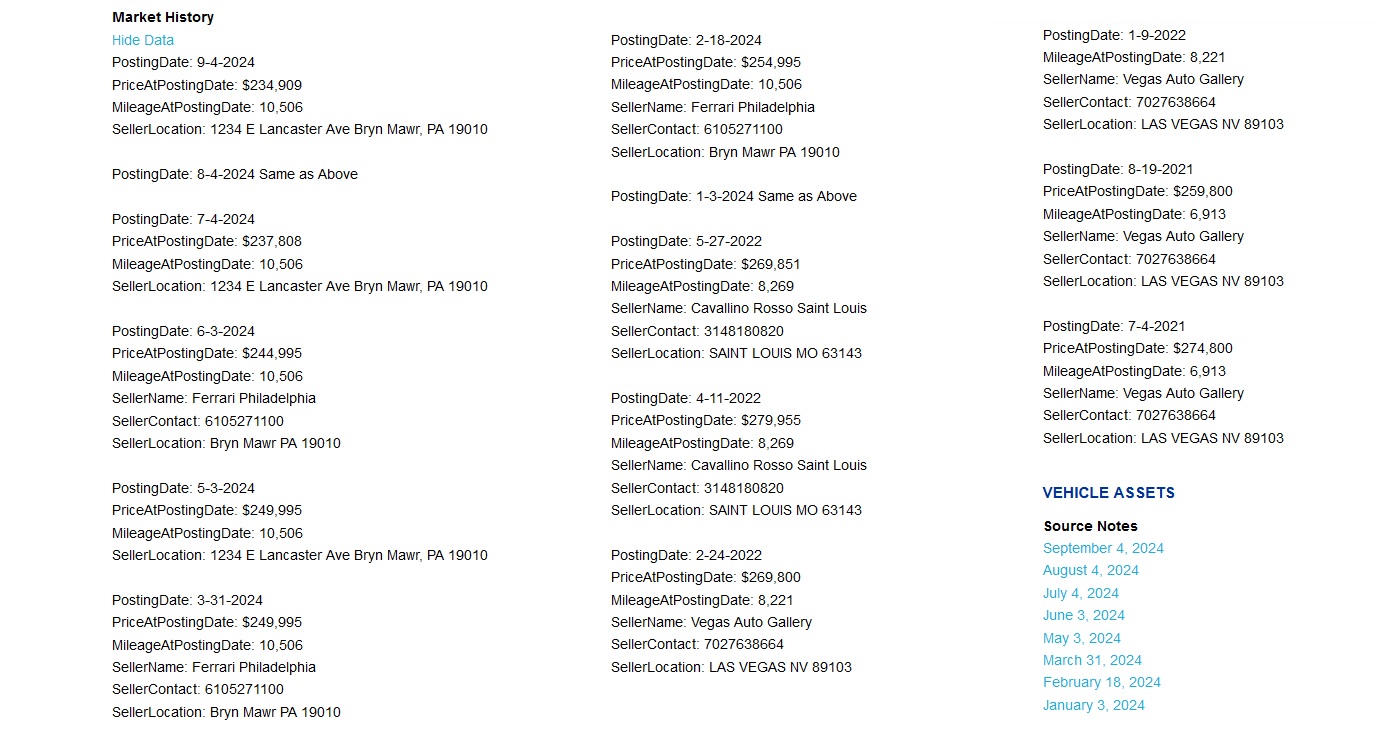 - Review available ‘on the market’ history of a vehicle to understand where it has been sold, how it has been traded and how its asking price has changed over time.